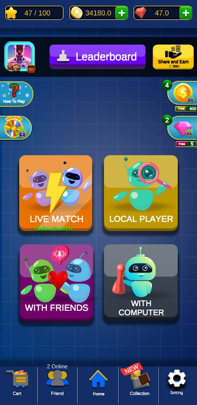 👉VS Friend👩❤️👨 - 이 모드에서 플레이어는 페이스북, whatsapp, 인스타그램 등에 ROOM ID를 공유하여 멀리 있는 친구들과 플레이할 수 있습니다.