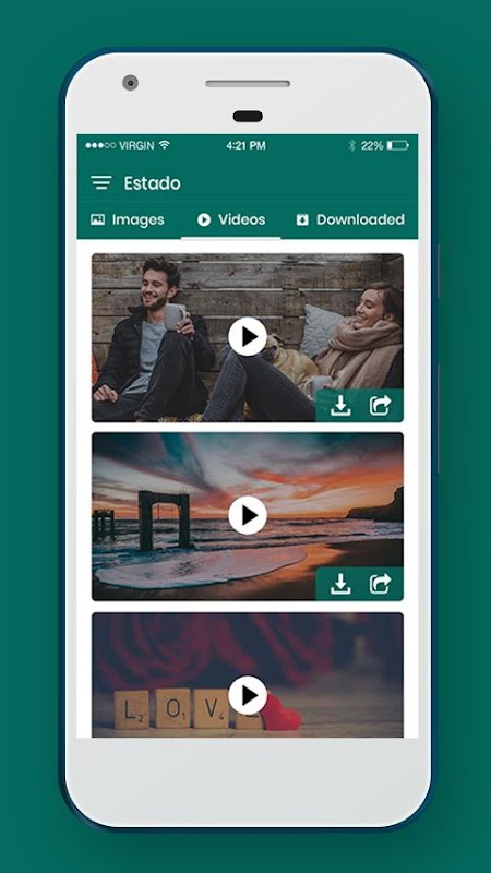 2. 이제 Estado 앱을 열고 모든 미디어 파일을 볼 수있는 상태에서 사용할 수 있습니다.