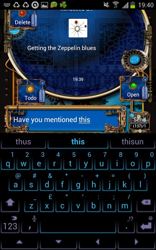 Then from within Go SMS again > Menu > Theme > Go Popup Tab > Installed > Select Steampunk Go Popup