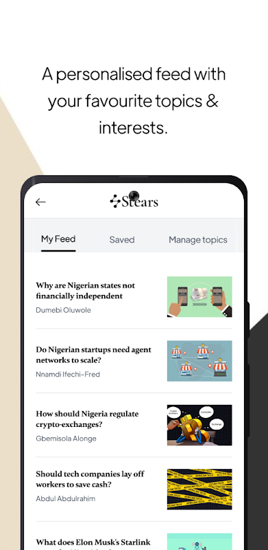 우리의 구독자 앱은 Stears가 대륙에서 제공하는 깊은 통찰력과 분석에 대한 탁월한 액세스를 제공합니다. 구독자 앱은 구독자가 대륙의 추세, 주제 및 변화를 이해하는 데 도움이 되는 풍부한 분석 아카이브에 액세스할 수 있는 가장 편리한 방법입니다. 또한 최고의 아프리카 분석에 대한 광고 없는 원활한 경험을 제공합니다. 모든 것이 여기에 함께 제공됩니다.