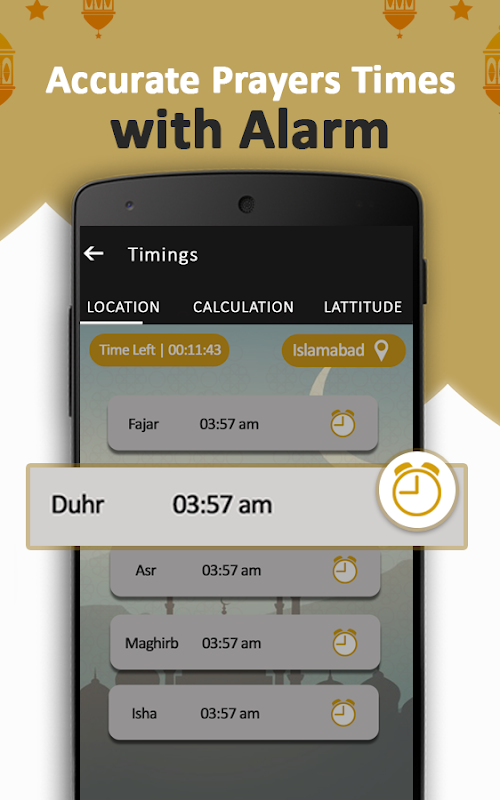 Prayer timings are location based tool in the step by step salah (Namaz ka Tarika) app to set alarm at the specific prayer time. Namaz alarm can be set at the Islamic prayer timings manually or automatically. Step by step salah is a complete Salat apps package which tells you compulsory Islamic prayers method, how to pray in islam, when to pray and where to pray. Learn namaz and pray at the right time and location to make happy your Allah.