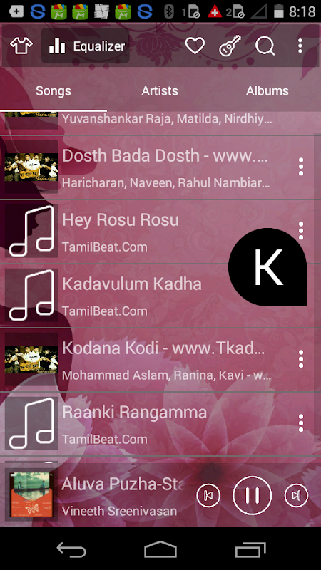 Music player is not only based on artists or albums but also songs