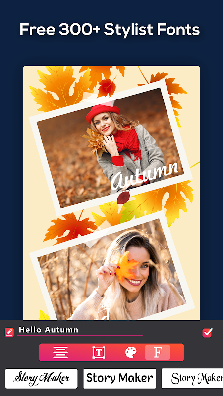 In this story maker app has 500+ Stories Photo frames and 300+ fonts with stickers. You can use this story maker app for all your social requirements. In this Stories template in 20+ Categories like festival Christmas, holi, diwali, summer, autumn, new year, fruits, Halloween, wedding etc.