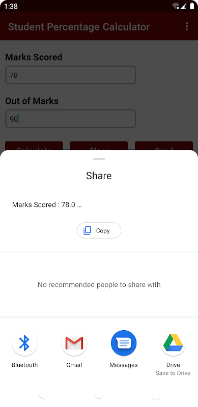 * 앱 자체를 통해 백분율을 공유할 수도 있습니다.