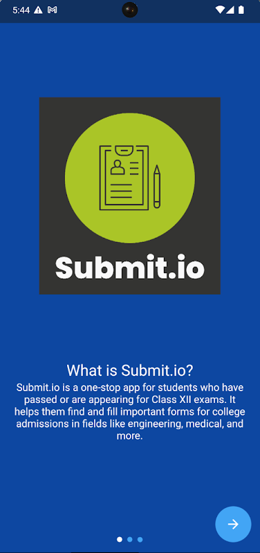 고등 교육 및 취업 기회를 위한 필수 양식을 검색, 추적 및 적용할 수 있는 원스톱 솔루션입니다! JEE, NEET, NDA, 디자인 과정, 공무원 또는 기타 직업 경로를 준비하든 Submit.io는 전체 프로세스를 간소화하기 위해 여기에 있습니다.