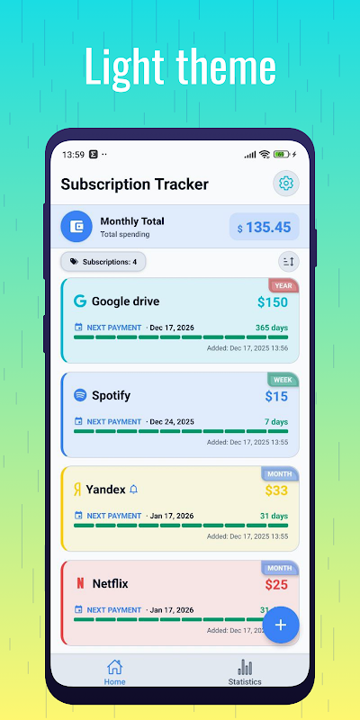월별 및 연간 구독 비용을 추적하세요. 시각적인 통계를 통해 돈이 어디로 가는지, 실제로 얼마나 지출하는지 파악할 수 있습니다.