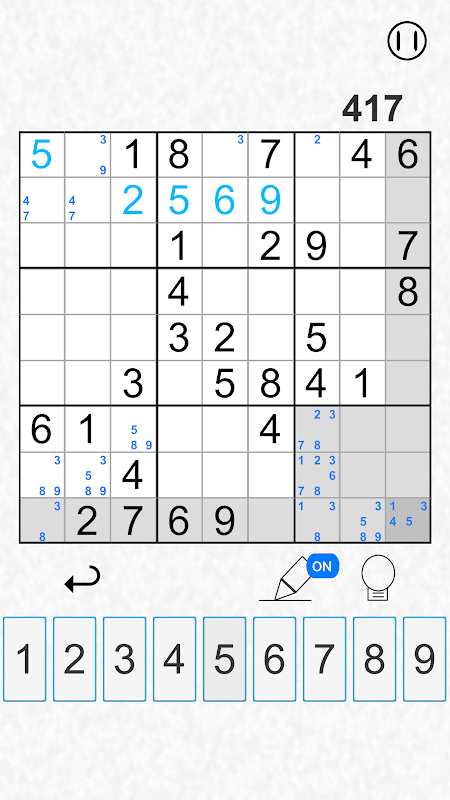 스도쿠 플레이 중 네모 안에 들어갈 숫자를 모를 땐 메모 기능을 이용해 보세요. 그것.