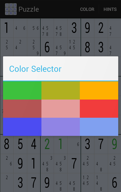 - Provides hints for solving Sudoku puzzles, including number hints and color hints