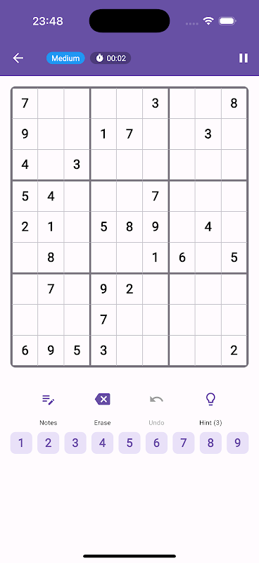 퍼즐은 미리 채워진 일부 셀("주어진 셀"이라고 함)로 시작됩니다.
