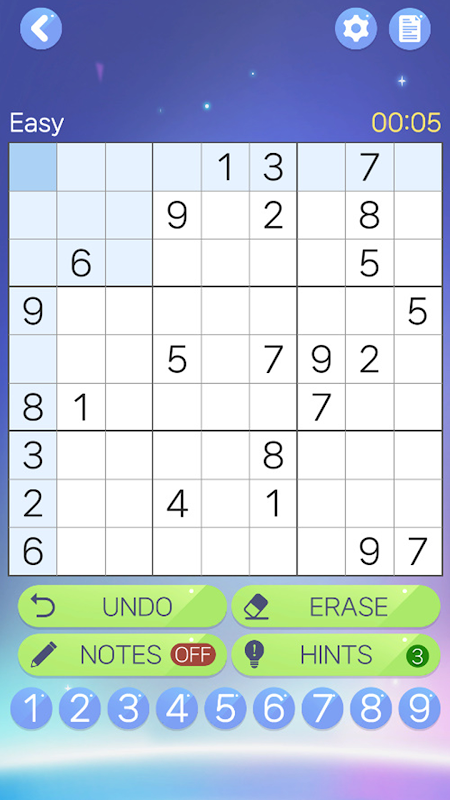 논리 기반 숫자 퍼즐 게임이며 목표는 각 그리드 셀에 1부터 9까지의 숫자를 배치하여 각 숫자가 각 행, 각 열 및 각 미니 그리드에 한 번만 나타나도록 하는 것입니다.
