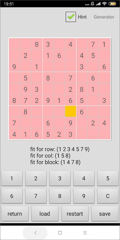 3 어려움을 가진 스도쿠 퍼즐. 행, 열 및 블록의 피팅 집합을 참고하십시오.