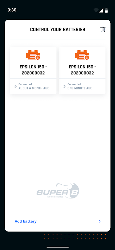Be in Charge App 2는 다음 Super B 배터리 연결을 지원합니다.