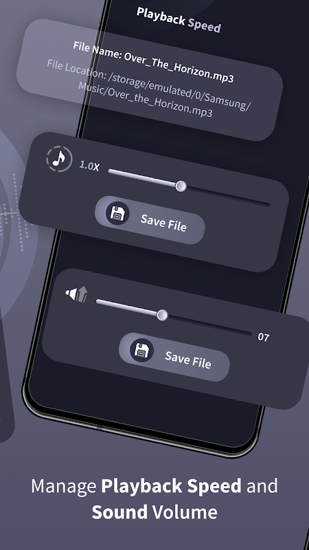 스마트폰에서 선택한 갤러리 음악의 품질과 볼륨을 향상시킬 수 있는 전화 음악 도구를 사용하십시오. 음질을 향상시키기 위해 특정 요구 사항과 선호도를 충족하는 최고의 전화 음악 증폭기 도구입니다. 갤러리에서 선택한 음악 중 하나를 선택하고 증폭 도구를 선택하여 음악을 관리하는 사운드 이퀄라이저로 조정하고 저음 및 3D 품질을 원하는 대로 변경할 수 있습니다. 마지막으로 생성 폴더에 저장합니다.