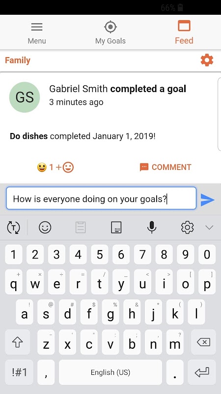 You can create daily, weekly, or monthly goals. Or goals that you only want to complete once. When you create your goal you can choose to add it to a group. By doing so, your friends will be able to view your progress as you accomplish your goals.