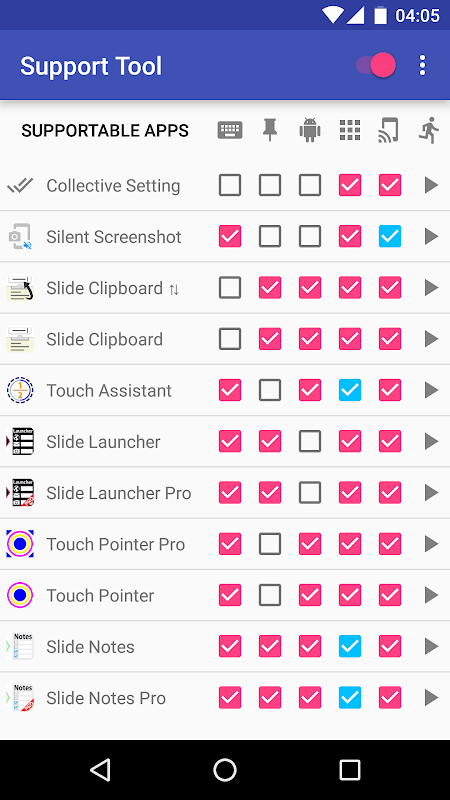 은 "지원 도구"의 화면에서 오른쪽 상단의 스위치를 켭니다.