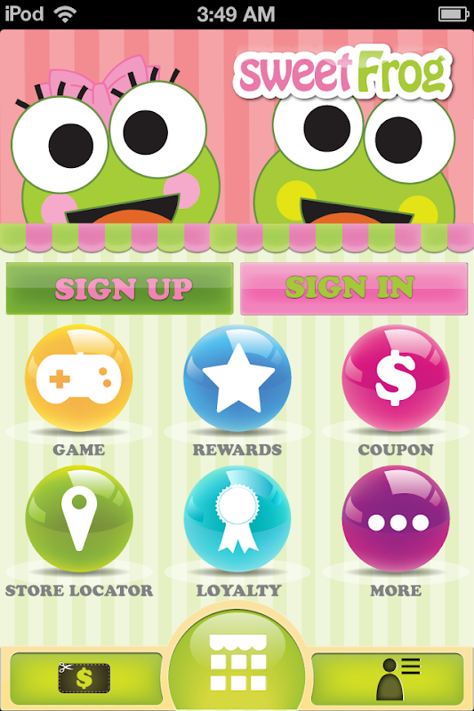 sweetFrog app uniquely blends a fun game with real life rewards. Be rewarded exploring the Sweet Frog land with Frogs Scoop and Cookie earning sweet rewards. Not a game fanatic? No problem! Just find your favorite sweetFrog yogurt stores and you will receive discount offers from your favorite locations. Easily locate sweetFrog stores, find the flavor you like and you can create your own recipe too!