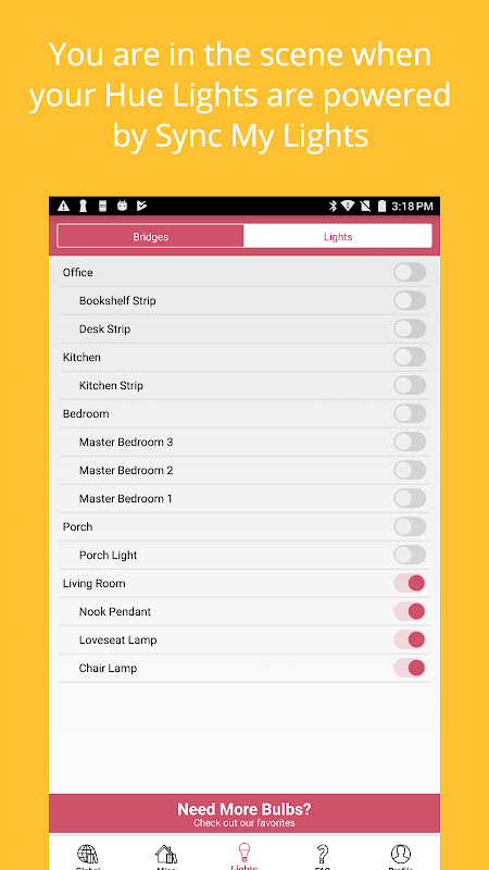 당신은 자동으로 구독을 취소 할 때까지 상점마다 365일에서 Google Play를 통해 $ 1.99를 청구합니다. 자동 갱신이 현재 기간이 끝나기 전에 적어도 24 시간을 해제하지 않으면 가입이 자동으로 갱신합니다. 구독 관리 할 수 있으며, 자동 갱신은 구입 후 계정 설정으로 이동하여 해제 할 수있다. 현재 구독을 취소 활성 가입 기간 동안 허용되지 않습니다. 추가 정보는 http://www.syncmylights.com/terms-of-use를 방문하여 확인할 수 있습니다.