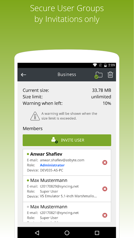 SYNCING.NET 비즈니스 버전은 다음과 같은 기능을 가지고 있습니다 :