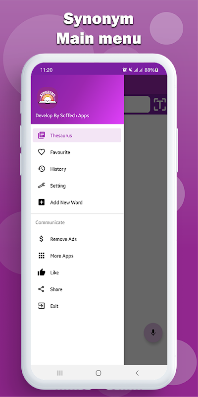 동의어 Antonym은 무료 오프라인 영어 응용 프로그램입니다. SofTech Apps에서 개발했습니다. 이 영어 동의어 및 반의어에는 문법 유형, 의미, 정의, 반의어 및 동의어와 함께 300,000개 이상의 단어가 포함된 단어 데이터베이스가 있습니다.