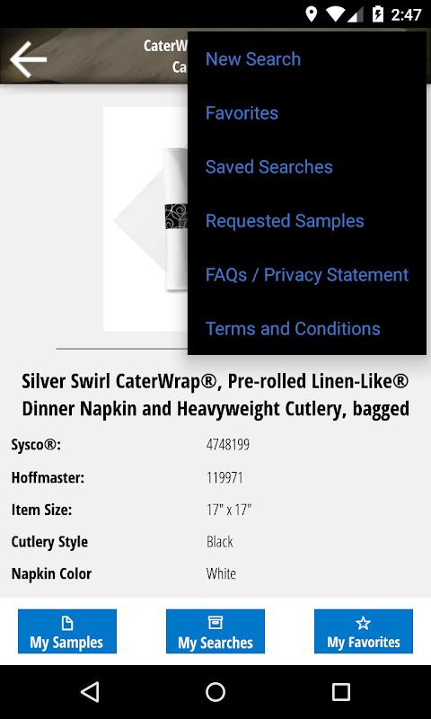 The Sysco app – for Android – is easy-to-use and provides specific details and pictures of the products.