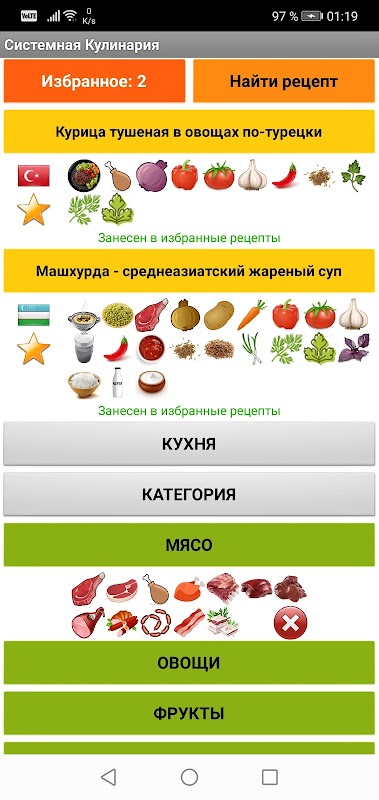 1. Все продукты и кухни - картинками, при поиске можно ничего не набирать