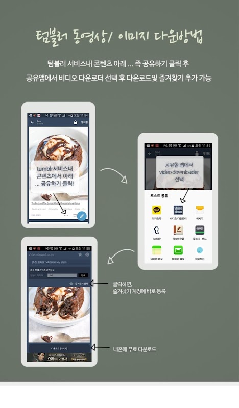 텀블러 동영상을 스트리밍 재생을 하며, 텀블러 동영상을 스마트폰에 mp4 파일로 저장이 가능합니다.