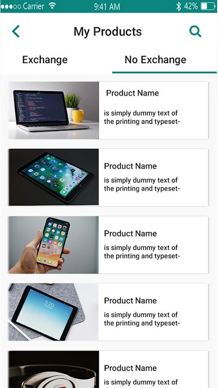 제품 교환의 응용 프로그램은 당신이 다른 것을 필요로하지 않는 것을 대체 할 아이디어에 달려 있으며, 응용 프로그램은 제품을 포함하는 목록으로 나누어 져 사용자가 전환 할 수 있도록 다음과 같은 모든 상품을 볼 수 있습니다.