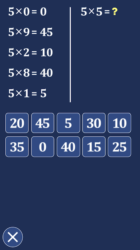 Table5x 응용 프로그램은 무료이지만 5의 곱셈표를 작업하고 암기하는 데 매우 효과적입니다. 새로운 디자인, 새로운 게임, 새로운 애니메이션. 이제 Table5x 애플리케이션은 5가지 게임을 제공합니다.