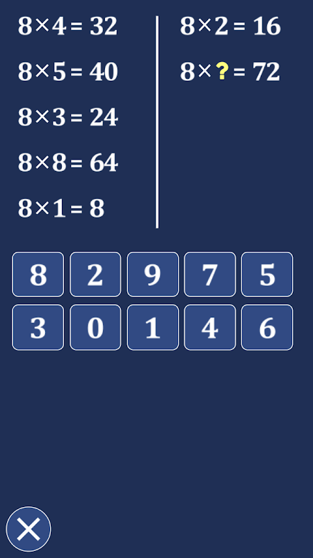 Table8x 애플리케이션에는 아무런 기능도 없습니다. 8의 곱셈표만 있으면 됩니다.