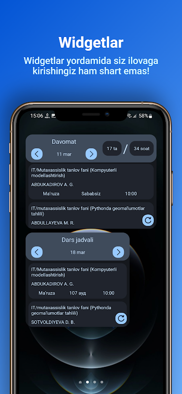 • Vidjetlar orqali ilovaga kirmasdan muhim ma'lumotlarni ko'rish.