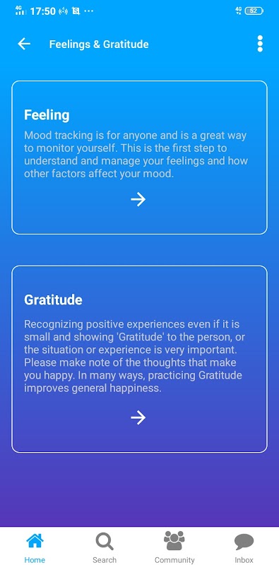 App provides self care tools such as recording gratitude and moods, community features to support each other in need. video, articles and audio by experts in yoga, meditation, mindfulness and sleep stories.