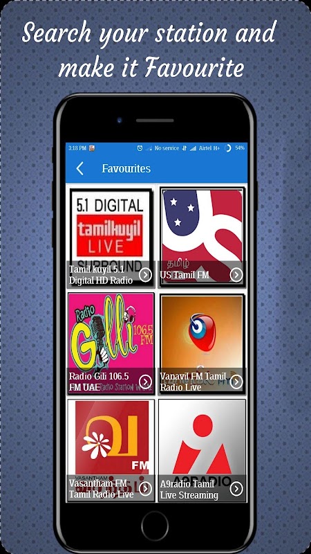 This is one of its kind in Google store having more than 130 Tamil radio stations. You name it, you will hear the station playing your faviourite songs. This app is loaded with favorites list, sleep timer to auto shutdown FM after a time, sharing with friends, background playing etc.