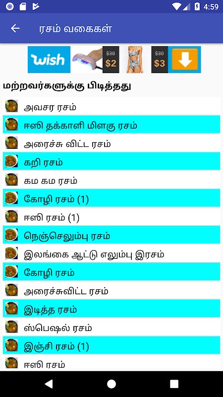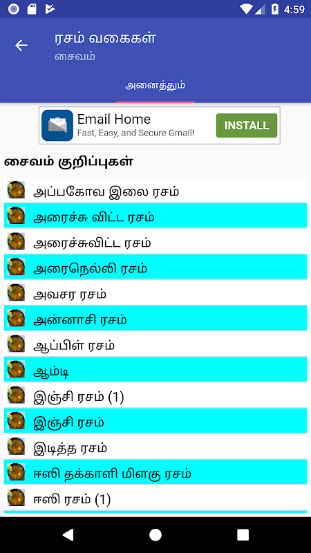 모든 요리법은 타밀어 (தமிழ்)로되어 있습니다. 100 개 이상의 다양한 Rasam 레시피 (ரசம் சமையல் குறிப்புகள்)