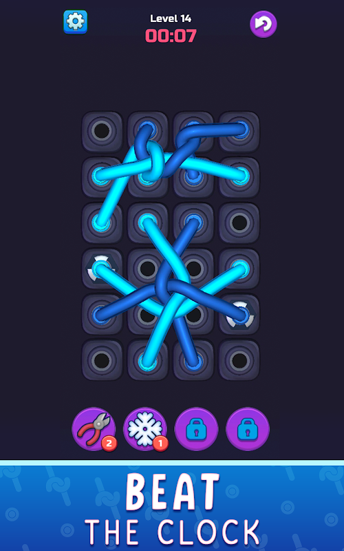 부스터 활용: 가위 등의 강력한 도구를 사용하여 매듭을 자르고 Time Freeze를 사용하여 타이머를 일시 중지하여 전략적인 이점을 얻으세요.