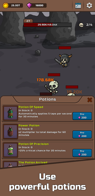 다른 RPG 방치형 리모콘 및 탭 게임과 마찬가지로 처음부터 시작해야 합니다. 이 괴물들의 땅과 싸우고 없애고, 금과 수정을 모으고, 강력한 영웅들로 이루어진 군대를 모으십시오.