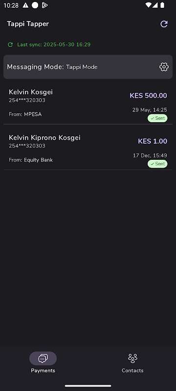 Tappi 앱은 모바일 머니 및 기타 결제 서비스 제공업체의 SMS 알림을 지능적으로 수신합니다. 결제가 감지되면 주요 거래 정보(고객 이름, 전화번호, 금액)를 자동으로 추출합니다. 이 고유한 프로세스를 통해 두 가지 강력한 기능을 구현할 수 있습니다.