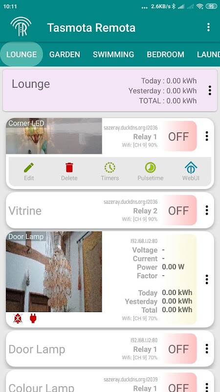 LAN에서 호환되는 Tasmota 장치를 제어하고 수정하는 간단하고 우아한 방법입니다. 그들을 찾고, 그룹화하고, 장면에 배치하고, 이름을 지정하고, 편집하고, 사진을 추가하고, 타이머를 설정하고 쉽게 제어할 수 있습니다.