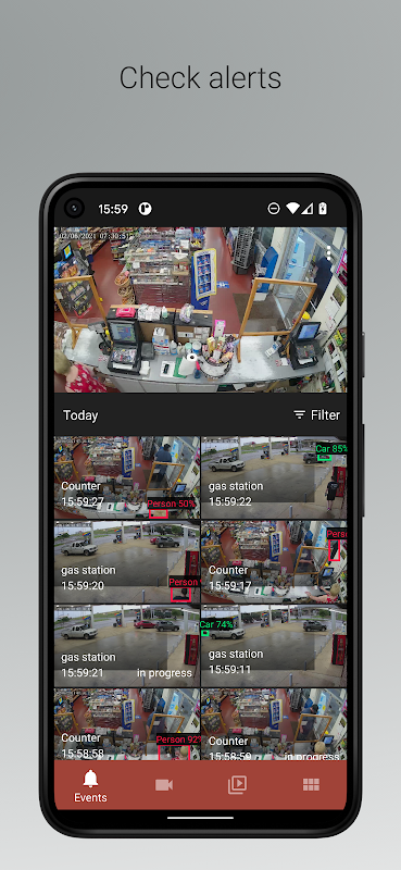 TDSS 카메라를 실시간으로 모니터링하거나 과거 이벤트 및 아카이브를 검토하십시오.