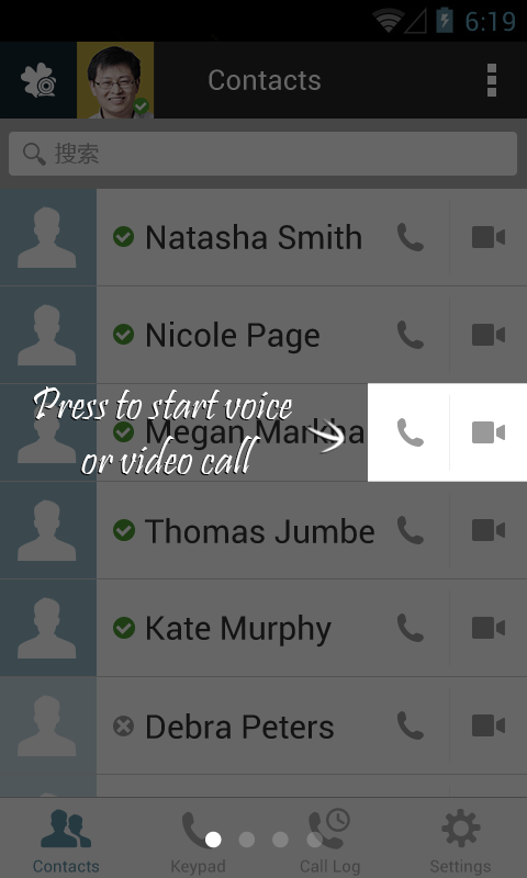 • 支持通过联系人列表、通话记录一键呼叫。