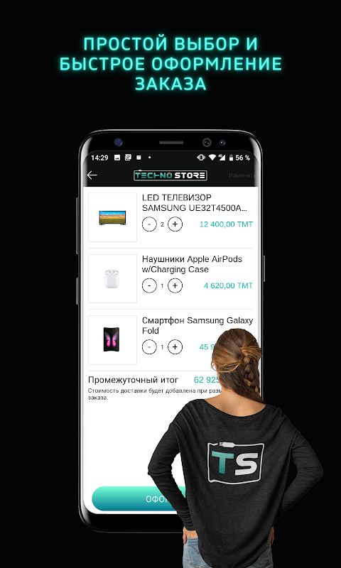 집이나 사무실에서 편안하게 Techno Store 모바일 앱에서 수익성 있는 구매를 하십시오.