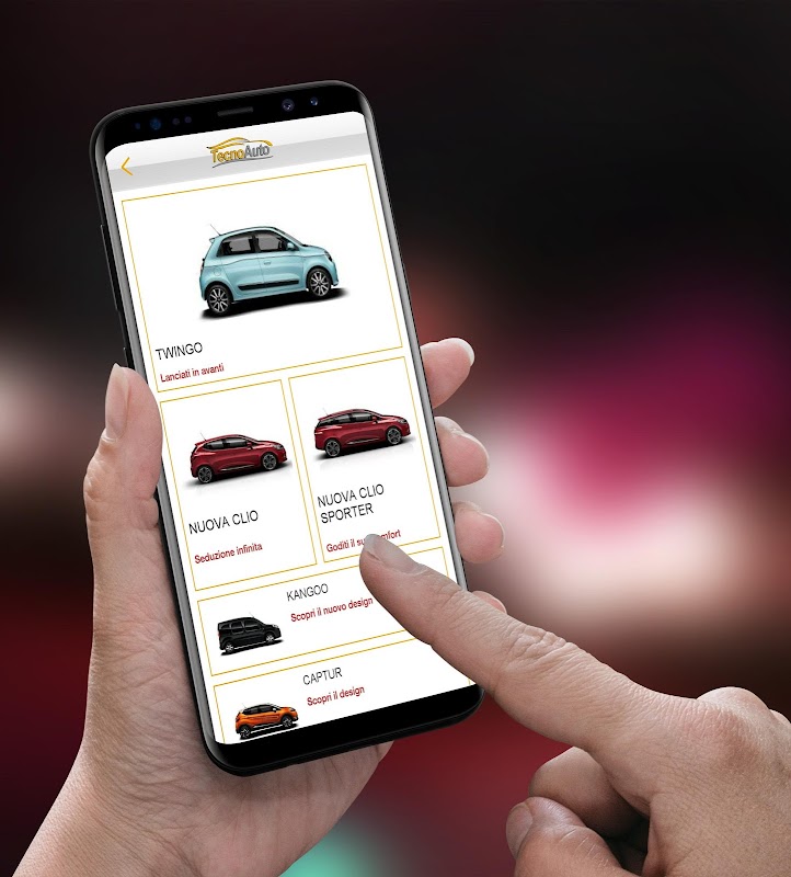 Benvenuti nell'App Tecnoauto, l'applicazione ufficiale della concessionaria Tecnoauto S.r.l. di Nola, con cui potrai rimanere sempre aggiornato sulle novità, sulle promozioni e gli eventi dei marchi Renault e Dacia, sui veicoli Commerciali Renault e Dacia e sull'usato di qualità garantito Renault. Scopri tutte le offerte, prenota il tuo appuntamento per il Test Drive e altro ancora .. Tecnoauto S.r.l., sempre con te.