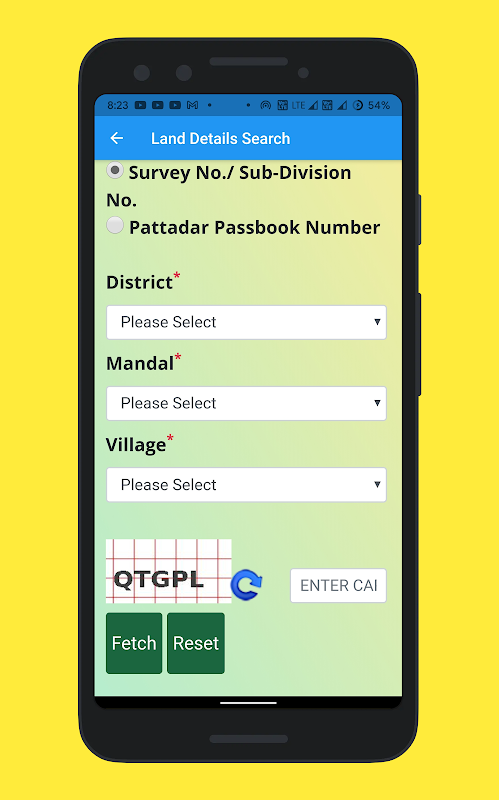 - 모든 Telangana 지역에 대한 토지 기록/카티안/플롯 정보 얻기