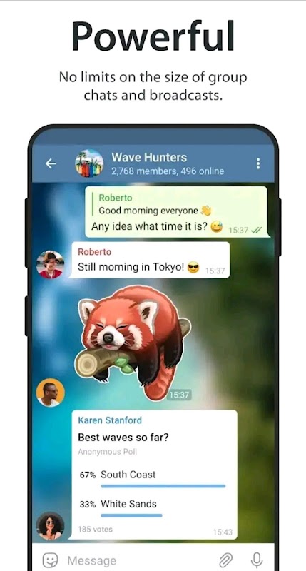 POWERFUL: You can create group chats for up to 30,000 members, share large videos, documents of any type (.DOC, .MP3, .ZIP, etc.), and even set up bots for specific tasks. It's the perfect tool for hosting online communities and coordinating teamwork.