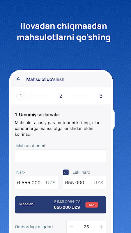 📲 Ilovaning barcha funksiyalari savdoyingizni soddalashtirishga, sizga va xaridorga qulay bo'lishiga qaratilgan. Ko'p eshitgandan ko'ra bir marta ilovadan foydalanib ko'ring va onlayn savdoyingiz rivojlanib ketganidan zavqlaning!😍