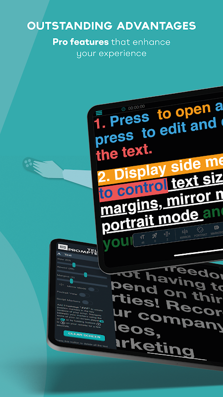 제한 없이 이 앱을 무료로 사용할 수 있고, 기기를 텔레프롬프터로 바꾸거나 전문 미러 텔레프롬프터와 함께 기기를 사용할 수 있습니다.