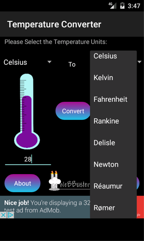 모바일 애플리케이션의 개발이 애플리케이션의 한 배너 고라가를 지원하기 위해서, 광고는 단지 인터넷에 연결되어있는 경우 도시되고,이를도 작동 할시 온도 변환기를 사용하기 위해 인터넷에 접속 될 필요가 없다 완전히 오프라인.