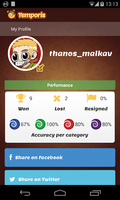 Check your performance in Temporis stats section and share your achievements on Facebook and Twitter.