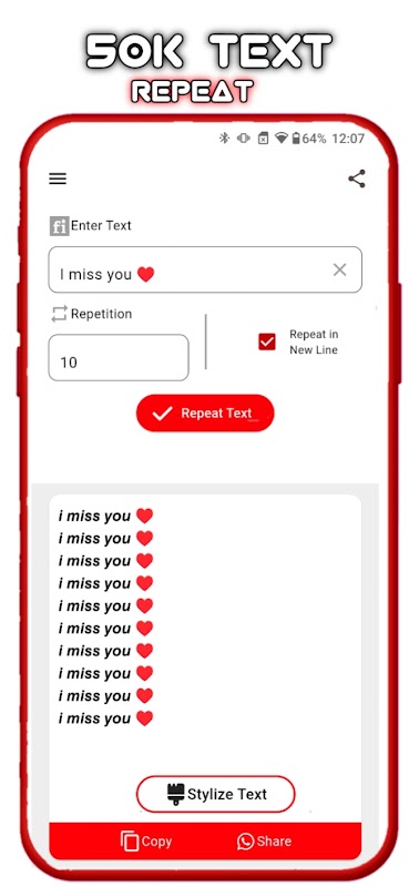 텍스트 반복 및 반복 텍스트는 원하는 만큼 텍스트를 대체합니다. 복사하고 붙여넣기만 하면 됩니다. 앱을 사용하면 누구나 1번 생성으로 텍스트를 여러 번 공유할 수 있습니다. 그것은 당신에게 도움이 되거나 시간을 절약해 줍니다. 또한 새 줄 텍스트 반복으로 반복 제한을 설정할 수 있습니다. 앱의 인터페이스에는 텍스트 반복기, 텍스트 뒤집기, 텍스트 반전, 세련된 글꼴 반복, 임의 텍스트, 세련된 텍스트, 텍스트 반복, 텍스트 반복, 이모티콘에 대한 텍스트 반복 및 세련된 숫자 카테고리가 포함되어 있습니다.