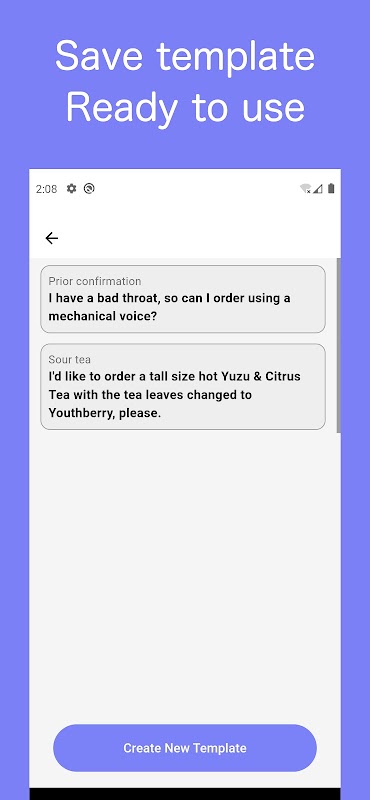 이 앱은 상점, 병원, 직장 등 큰 소리로 말하기가 어려운 상황을 위해 설계되었습니다. 실시간 대화에서 채팅 형식의 텍스트를 읽어줍니다. 또한, 표준 문구를 등록하는 기능도 있어 처음부터 말하기 어려움을 알려줌으로써 원활한 의사소통에 도움을 줄 수 있습니다.