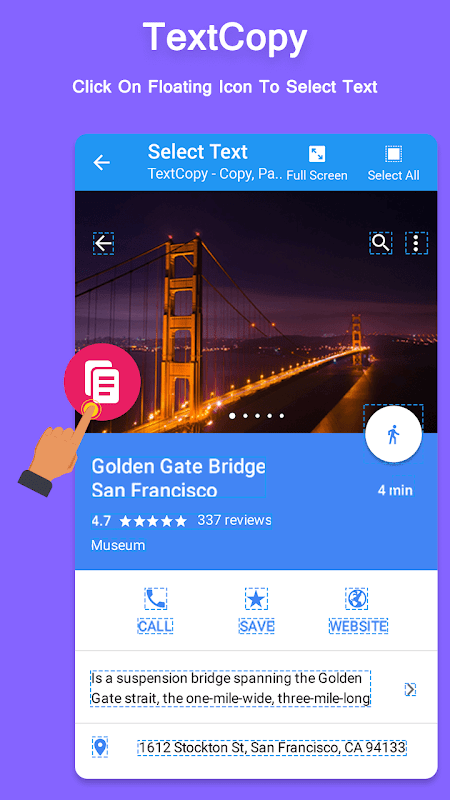 • 플로팅 버튼을 사용하면 모든 응용 프로그램에서 텍스트 복사를 쉽게 시작할 수 있습니다.